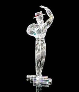 Second figure of the Magic of Dance trilogy. A clear figure of a man with a red crystal band around the hat. Swarovski mark. Certificate of Authenticity included. This item has its original box: 11”L x 6.5”W x 6”H.