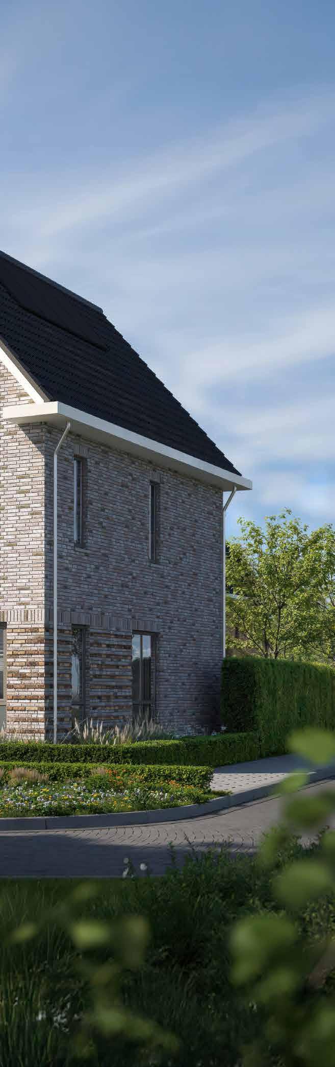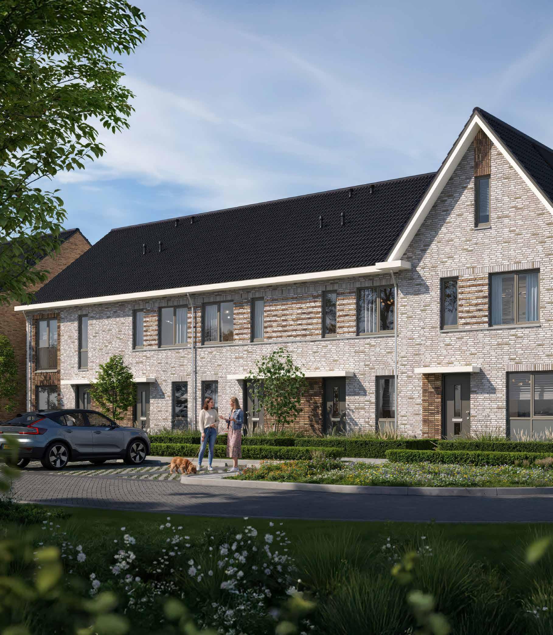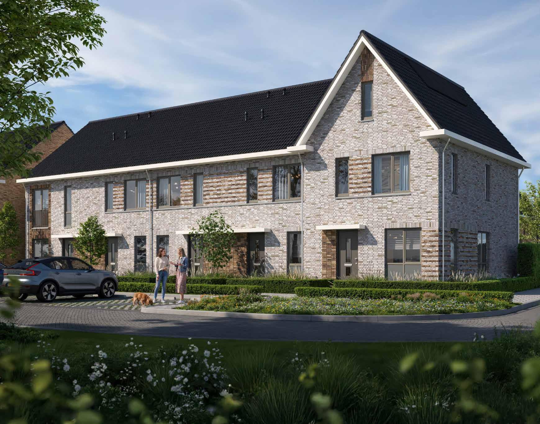 Bij het ontwerp zijn we geïnspireerd door de bestaande dorpslinten en de kenmerkende jaren ’30-architectuur van Deurne. Die stijl hebben we eigentijds vertaald naar herkenbare elementen in de wijk, zoals grote bakgoten, verfijnde details en aandacht voor de entrees. Luifels boven de voordeuren en zorgvuldig uitgewerkt metselwerk geven de woningen een uitnodigend karakter.