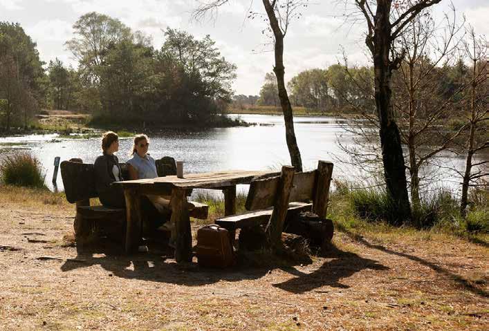 Via de kronkelpaadjes in het Zandbos wandel je naar het Buntven, op vijf kilometer afstand van De Grote Bottel. Onderweg kom je langs een natuurspeeltuin met klimtoestellen en een grote Vikingschommel.