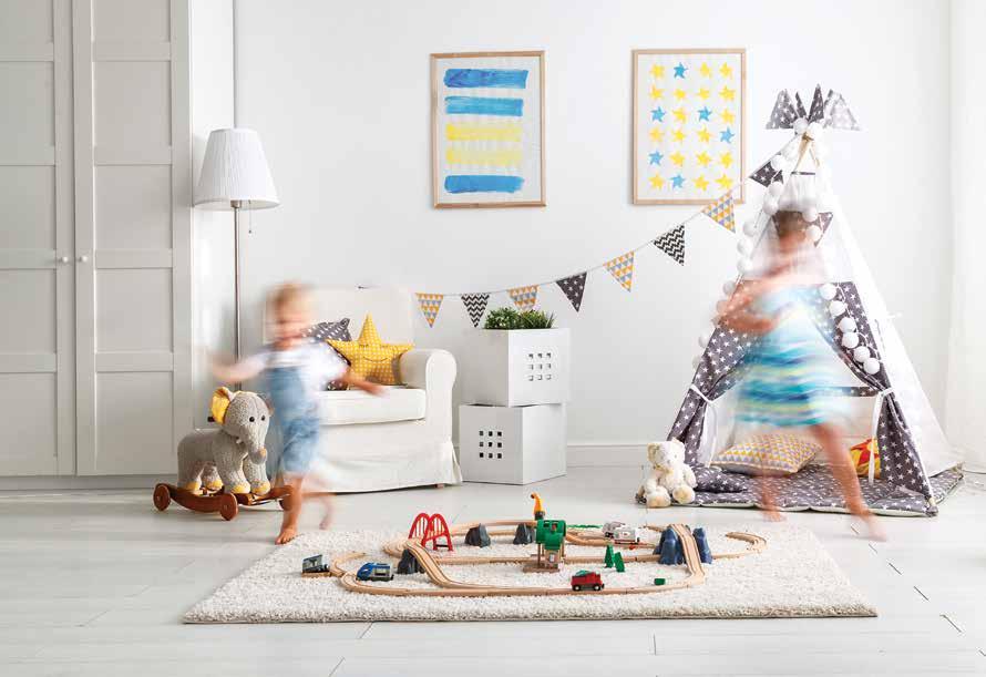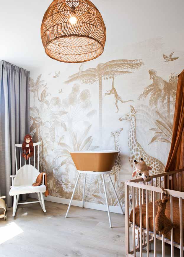 “Dankzij het behang van Pimpelmees en de accessoires van Jollein wordt hij al een echte dierenvriend”, lacht Emily. Terracotta is de overheersende kleurtint en dat geeft rust.