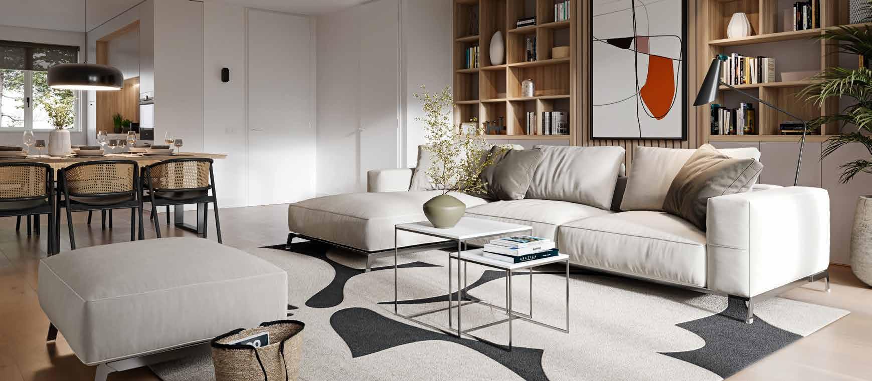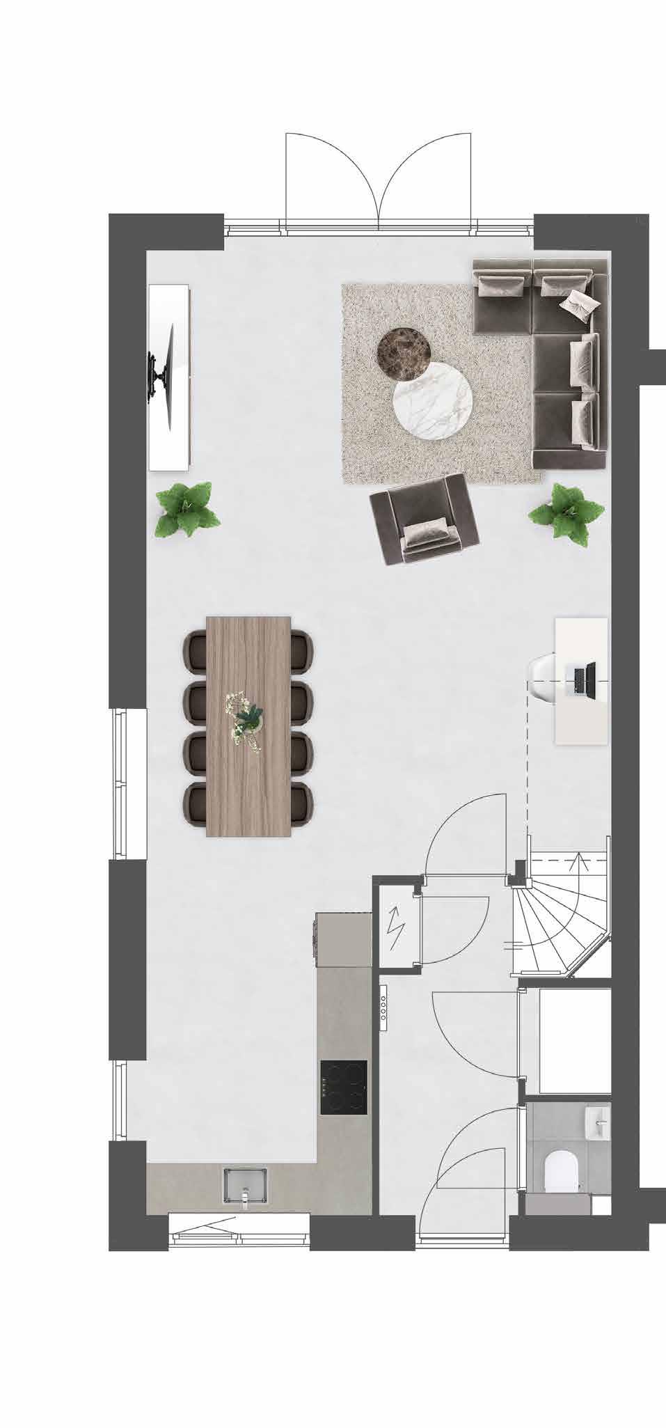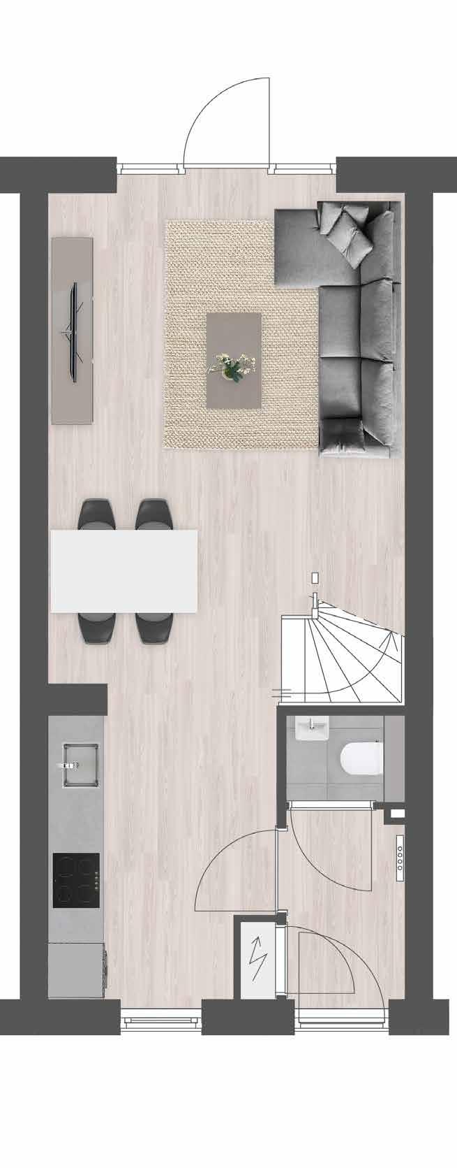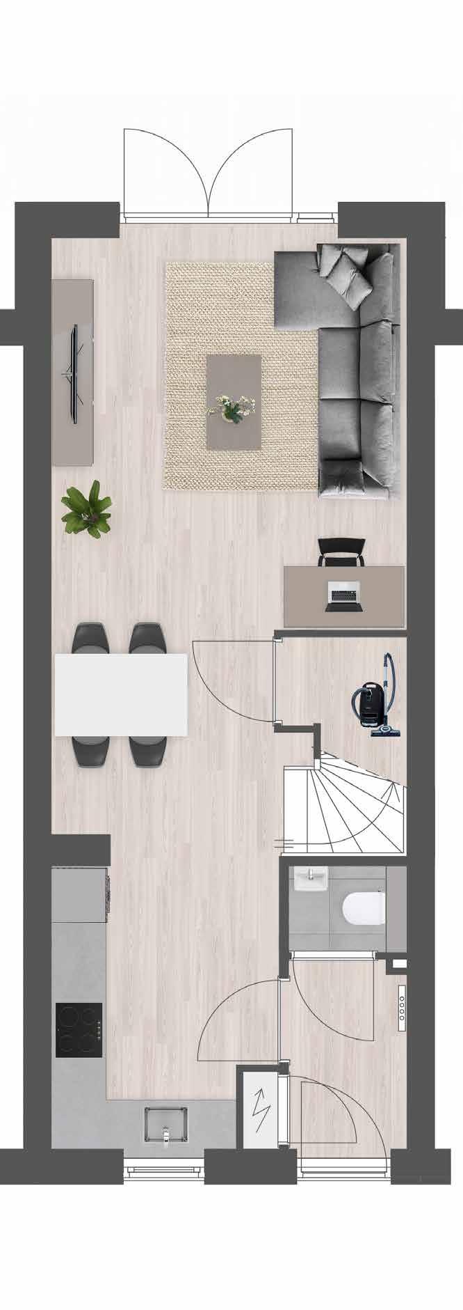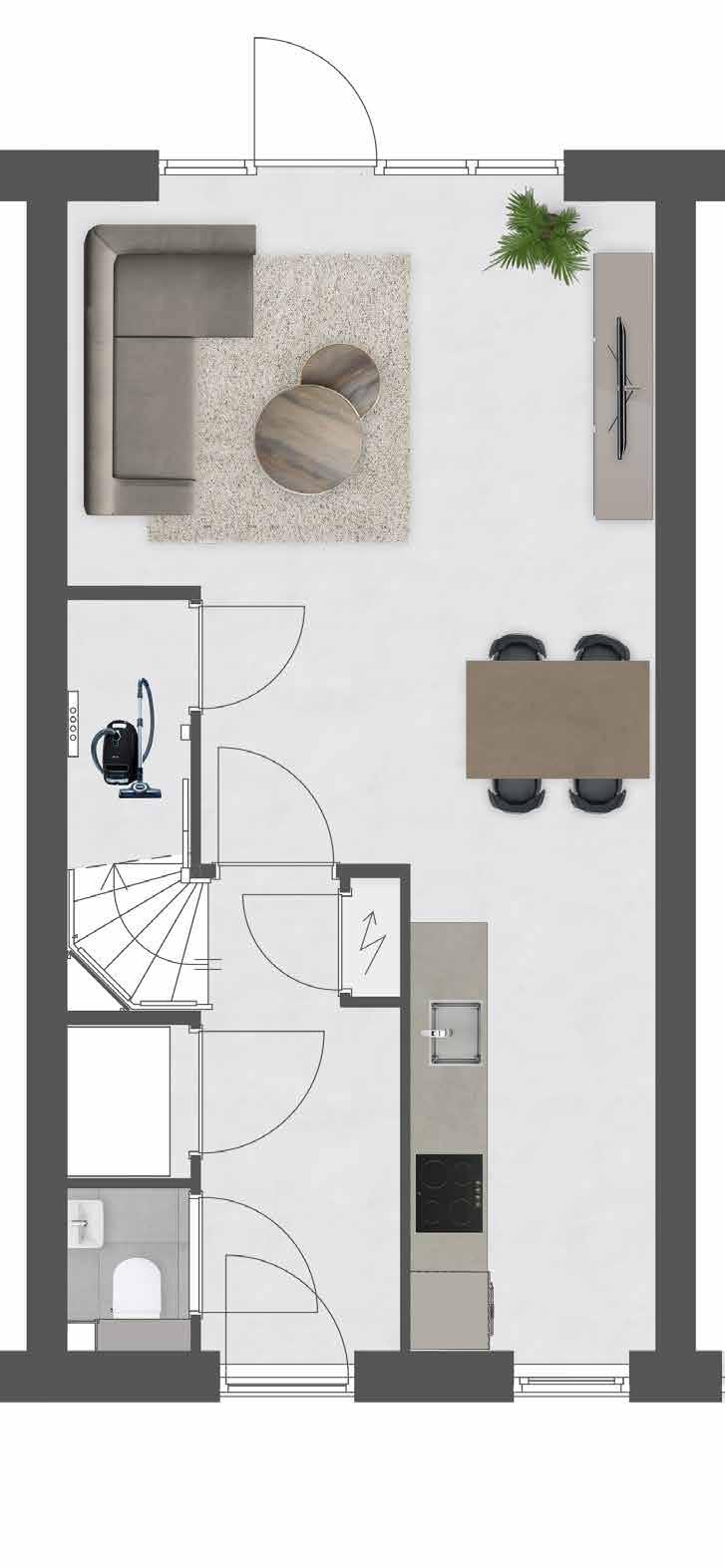 Dit Leef. magazine is bedoeld om de sfeer en de mogelijkheden van dit project te laten zien. De in dit Leef. magazine aangegeven keuken, huishoudelijke apparaten en inrichting c.q. aankleding geven een impressie van de mogelijkheden en behoren niet tot de standaard uitrusting van de woning. De juiste positie van elektra/schakelmateriaal, rookmelders, afzuigpunten t.b.v. ventilatie e.d. staan op de verkooptekeningen vermeld en zijn niet in de plattegronden opgenomen. Aan de beelden, illustraties, plattegronden en teksten in dit Leef. magazine kunnen geen rechten ontleend worden.