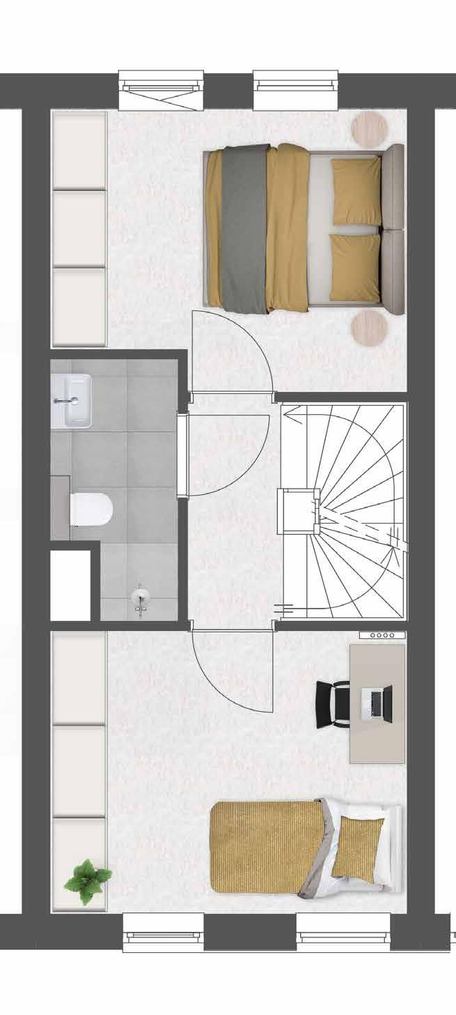 Het woningaanbod in De Grote Bottel is divers en toekomstgericht. In totaal bouwen wij hier 35 woningen, verdeeld over 12 sociale huurwoningen en 23 koopwoningen. Het aanbod bestaat uit comfortabele rijwoningen en ruime hoekwoningen, ontworpen met oog voor duurzaamheid, leefkwaliteit en dagelijks gemak. De opzet van het plan is overzichtelijk en groen. Zo ontstaat een prettige en toegankelijke woonomgeving waarin iedereen zich thuis kan voelen.