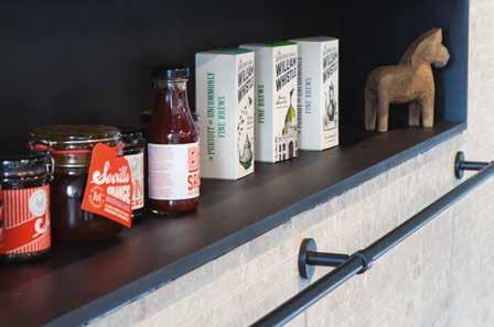 Mede dankzij de uitbouw van 2,40 meter aan de achterzijde van de woning was een flinke muur beschikbaar en die is vrijwel geheel benut voor een wandmeubel met een breedte van zo’n 4,5 meter. Het stalen raamwerk is ontworpen door Kristy en door Jeroen en zijn vader in elkaar gelast. “We hebben dat in de werkplaats van mijn vader gedaan en moesten een vrachtwagen huren om de kast naar ons huis te brengen. Wel gaaf dat we dat helemaal zelf hebben kunnen doen.”