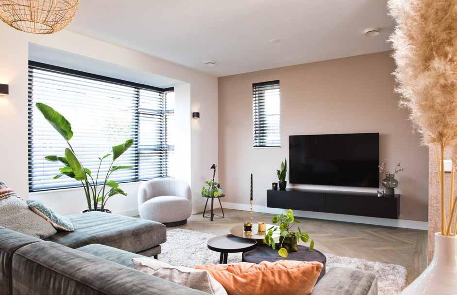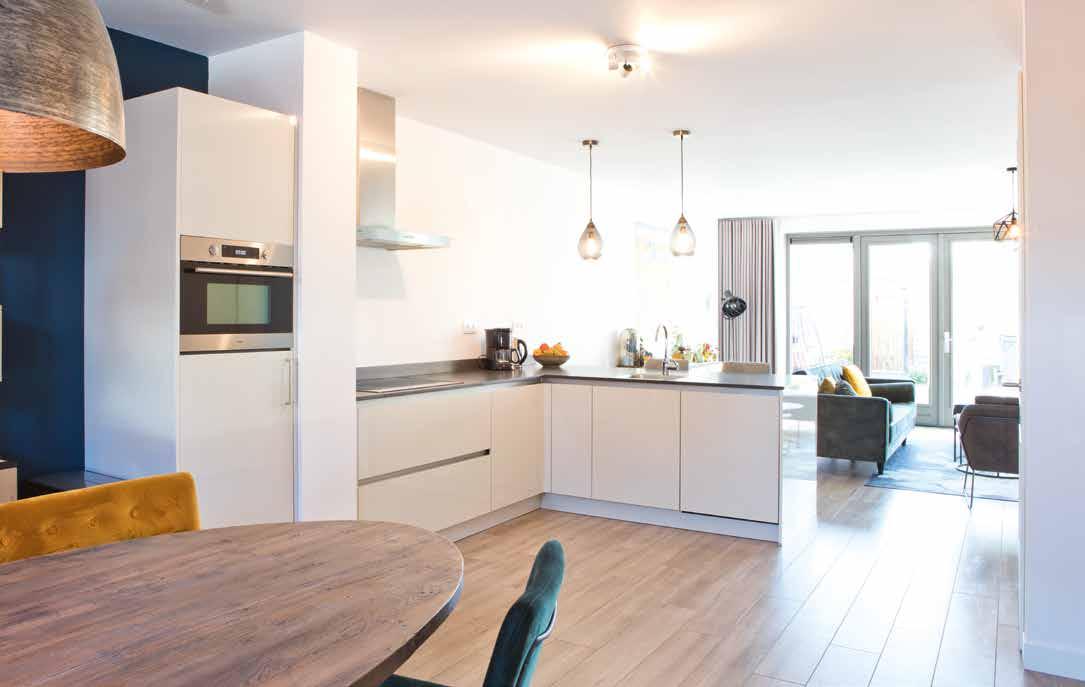 Rustig en ruimtelijk met enkele opvallende, kleurrijke elementen. Dat is de formule die Rosie en Angelo in hun hoofd hadden voor de benedenverdieping van hun gloednieuwe tweekapper in Heesch. En ze zijn er goed in geslaagd die gedachte vorm te geven. Allereerst door het creëren van meer ruimte: een erker aan de voorzijde en een uitbouw van 2,40 meter aan de achterzijde. “We zijn blij dat we deze opties konden kiezen. Daardoor hebben we heerlijk veel ruimte en de erker biedt ook extra lichtinval”, zegt Rosie.