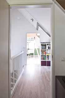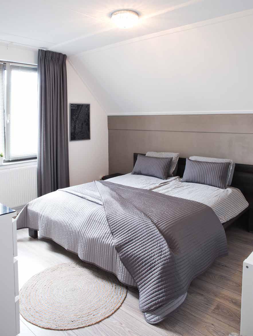 Op de zolder zijn de technische apparatuur (omvormer en warmtepomp) en de aansluitingen voor wasmachine en droger) netjes weggewerkt in een aparte ruimte. Daardoor kan de zolder ook zonder dat er een vierde slaapkamer is gemaakt toch dienen als logeerruimte. “In de toekomst gaan we hier misschien nog wel eens een dakkapel plaatsen, maar voorlopig hebben we ruimte genoeg.”