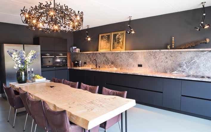 Cocky en Rob hebben in de woning inmiddels een heel eigen stijl gecreëerd met bijzondere meubelstukken, ornamenten, kunstwerken en een opvallende indeling. Zo is de keuken naar de achterzijde van de woning verplaatst. “Daar konden we, ook door de uitbouw van 2 meter 40, een veel grotere keuken realiseren.”