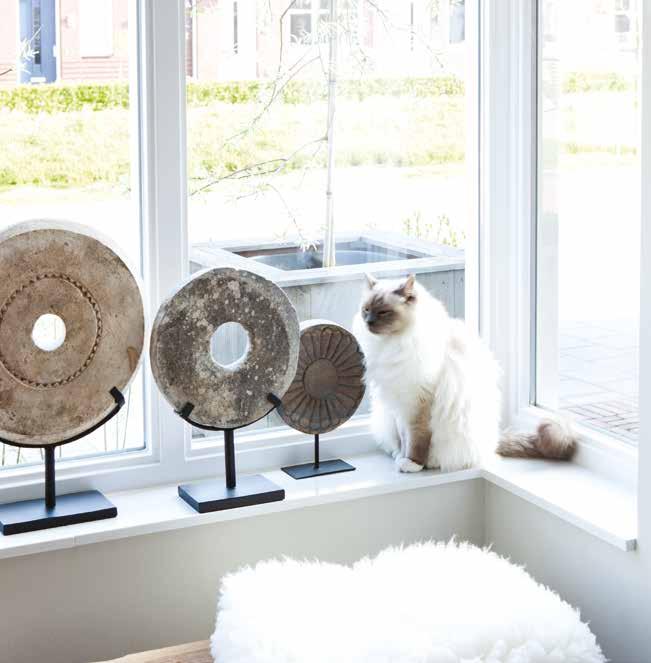 In de achtertuin tenslotte hebben Anouk en René een opvallende cortenstalen borderrand aangebracht om aan te sluiten bij de industriële sfeer en een beplanting waarin ieder seizoen een andere kleur overheerst. Behalve een hondenhok biedt de tuin veel woonruimte voor vogeltjes.