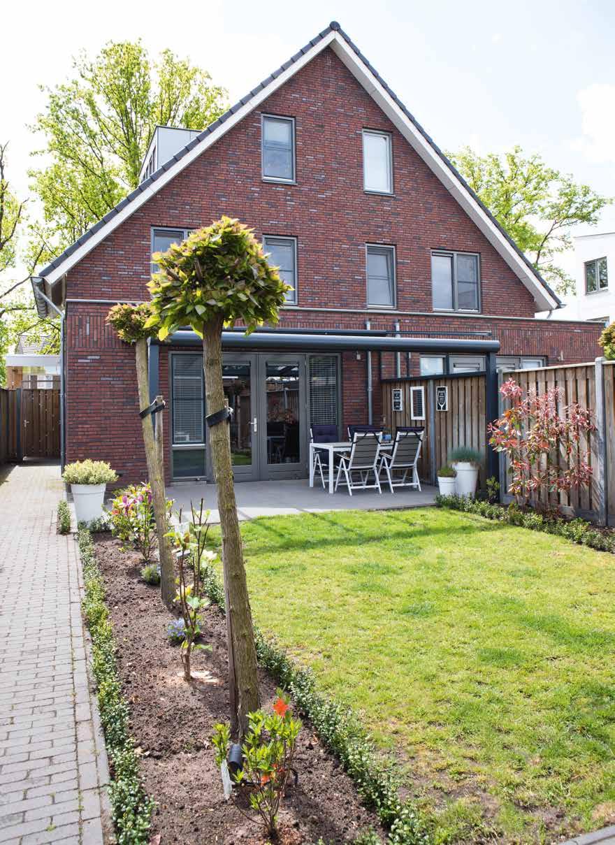 “Dat geeft direct al veel meer indelingsmogelijkheden.” Bij goed weer kan hij de leefruimte op de benedenverdieping nog aanzienlijk vergroten dankzij de openslaande tuindeuren. “Dat geeft toch een veel ruimtelijker indruk dan een schuifpui.” De tuin biedt met een eettafel tegen het huis aan en een loungehoek aan de achterkant volop mogelijkheden voor een aangenaam verblijf.