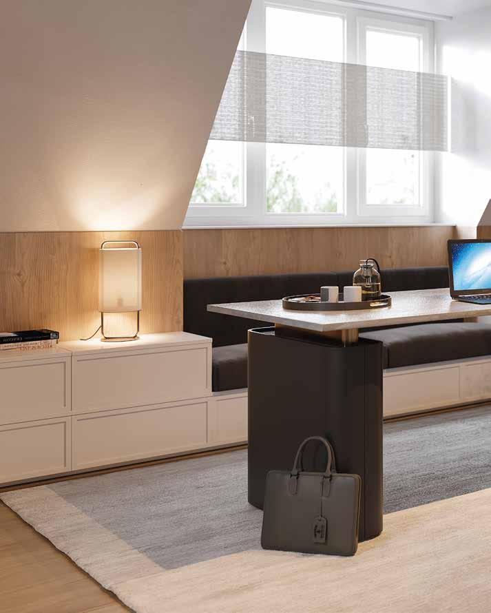 “Hier zitten we eigenlijk het meest en we hebben dankzij die erker een leuk zicht op de straat. De zonwering Duette biedt veel privacy. We hebben die meestal in deze stand staan, zodat we er onderdoor kunnen kijken.”