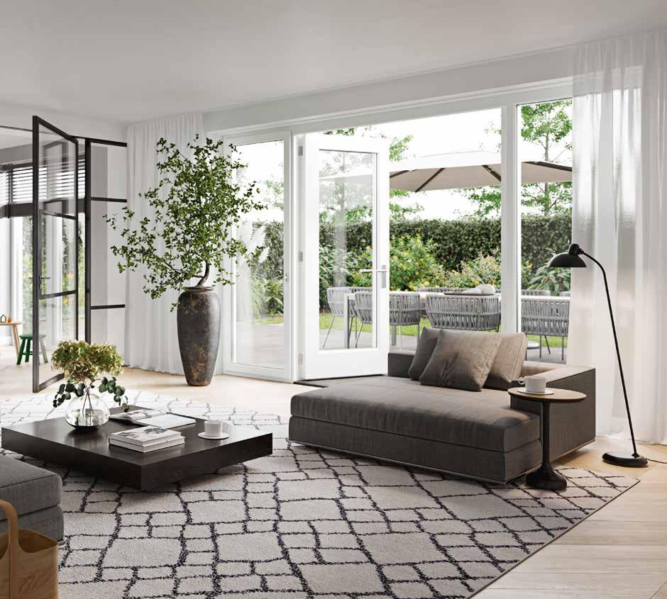 Met een aanbouw en openslaande tuindeuren betrek je de buitenruimte op een natuurlijke manier bij je binnenruimte. Zo heb je én extra ruimte én extra licht in je woonkamer.