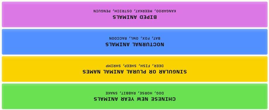 Sort the animals into four distinct categories and check your answers below:
