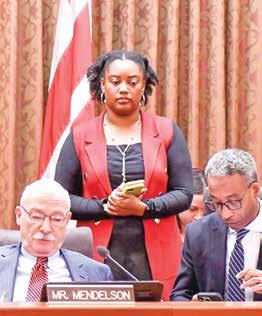 5 FDoni Crawford (center) assists Council Chair Phil Mendelson and former Councilmember Kenyan McDuffie during a November 2025 legislative meeting. In the aftermath of Mcduffie’s resignation, she was appointed as an at-large council member. (WI File Photo/Robert