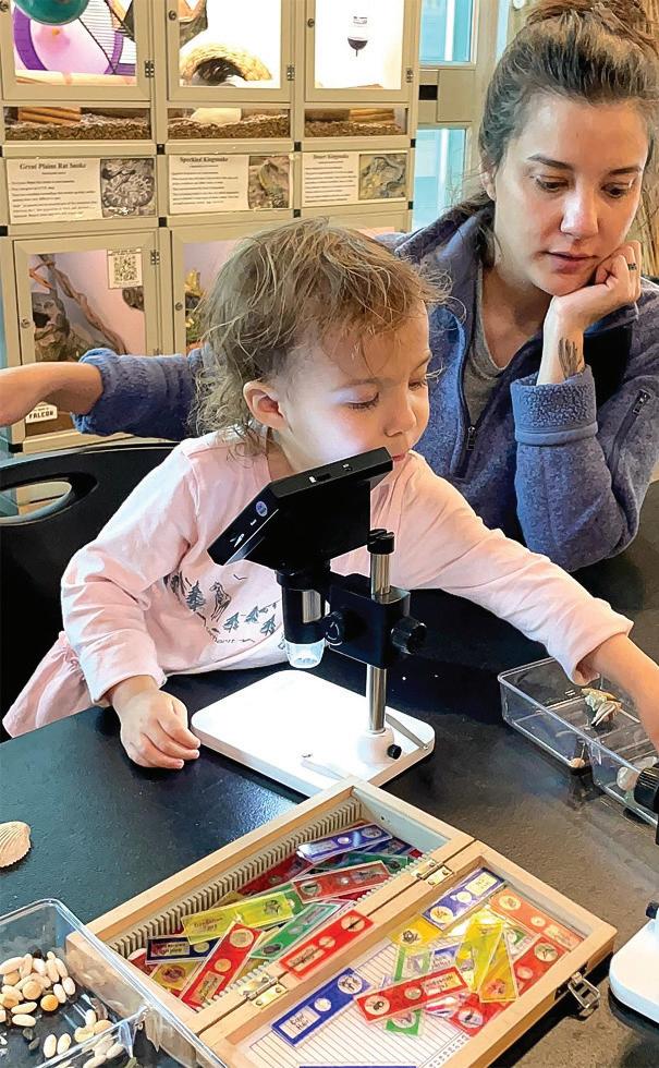 Thursday Nature Program visitors check out the turtle pond RBNC Members using a digital microscope | 07