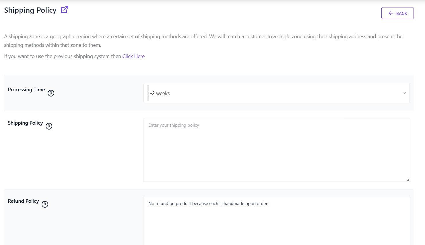 This section ensures you're covered after the sale by letting you customize how returns or warranties are processed—especially important for oneof-a-kind pieces.