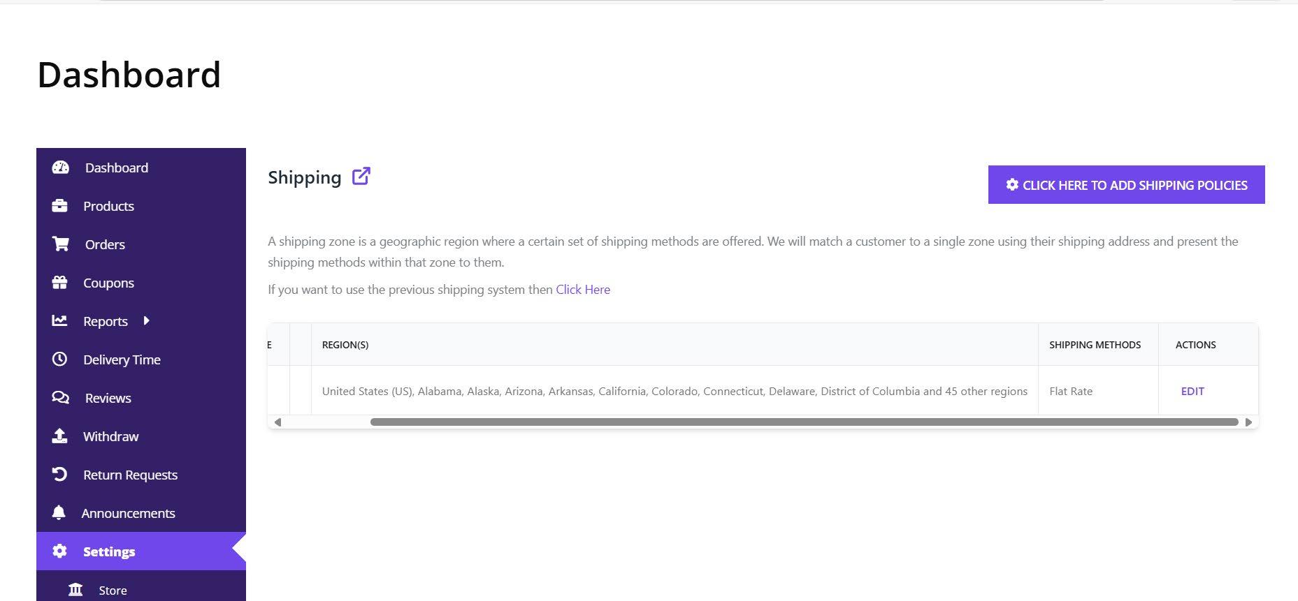 2: Once Shipping Method is added you’ll see it on your dashboard