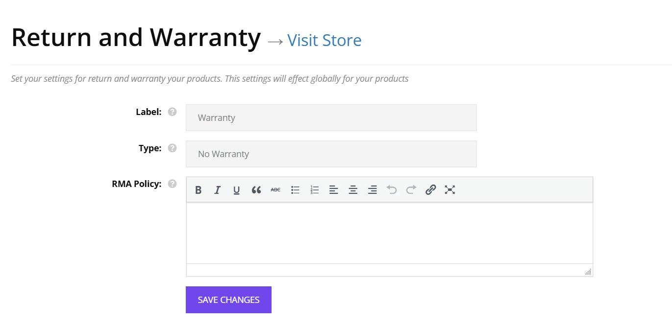 Even if you've set general shipping and refund policies, the RMA (Return Merchandise Authorization) section is where you control how returns are handled for your shop.
