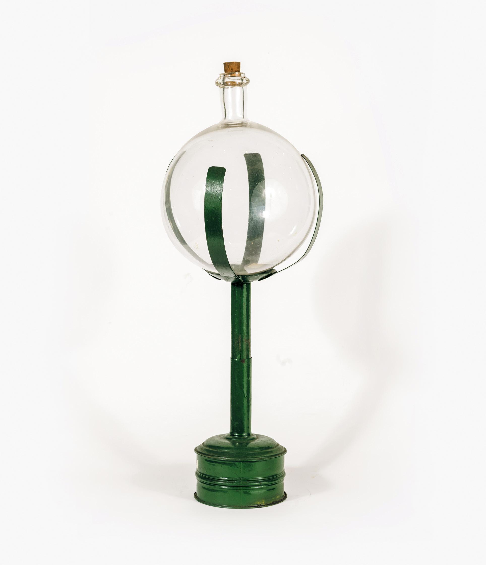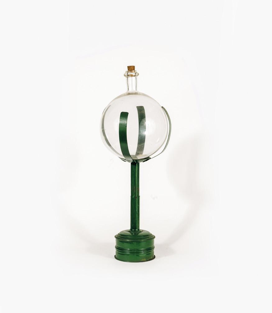 How do simple glass bottles find their way into a museum? It is the context they come from that gives them meaning: they were filled in famous breweries—even if the Jedlesee Brewery, unlike Mautner Markhof, may have faded from memory today. One glass object, however, stands out: the Schusterkugel (“shoemaker’s globe”). It was part of the inventory of many workshops—wherever as much light as possible was needed to undertake detailed manual work. The principle is simple: the spherical glass bulb, filled with water, concentrates diffuse light like a magnifying lens and thus helps to better illuminate the workplace.