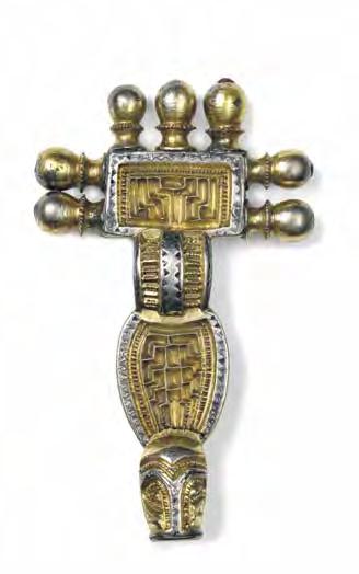 Diese silberne Bügelfibel, wahrscheinlich Teil eines Gürtelgehänges, gehörte wohl einer hochrangigen Persönlichkeit, um 550–575.