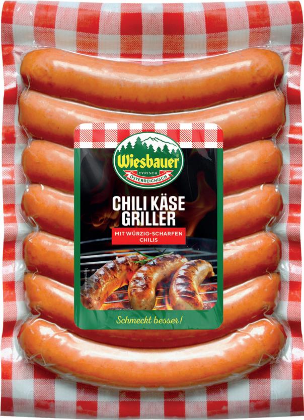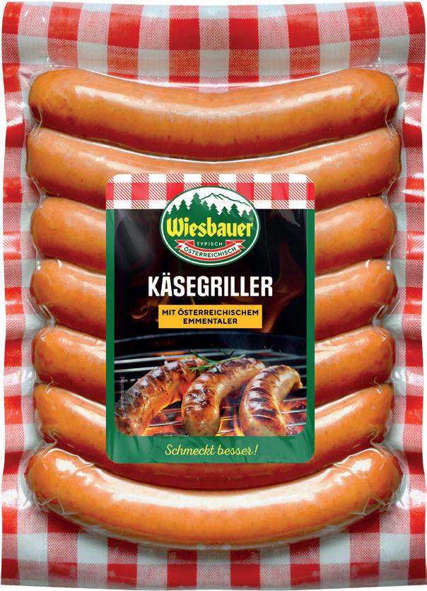 Die Käsekrainer werden aus ausgesuchten Rohstoffen hergestellt. Beim Braten bekommt die Käsekrainer eine schöne goldbraune Farbe. Leicht rauchiges Aroma und der vollmundige Käse ergeben den deftigen Geschmack. Dieser Produktklassiker eignet sich zum Kochen, Grillen oder Braten.