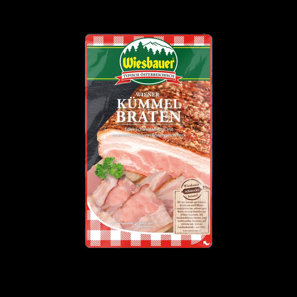 Ausgesuchtes, edles Schweinebauchfleisch mit mildwürziger Schinkeneinlage; mit feinem Brataroma.