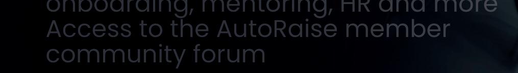 Full access to the Member Toolkit with modules covering recruitment, funding, onboarding, mentoring, HR and more Access to the AutoRaise member community forum ,