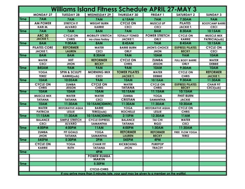 Williams Island Fitness Schedule APRIL 27-MAY 3