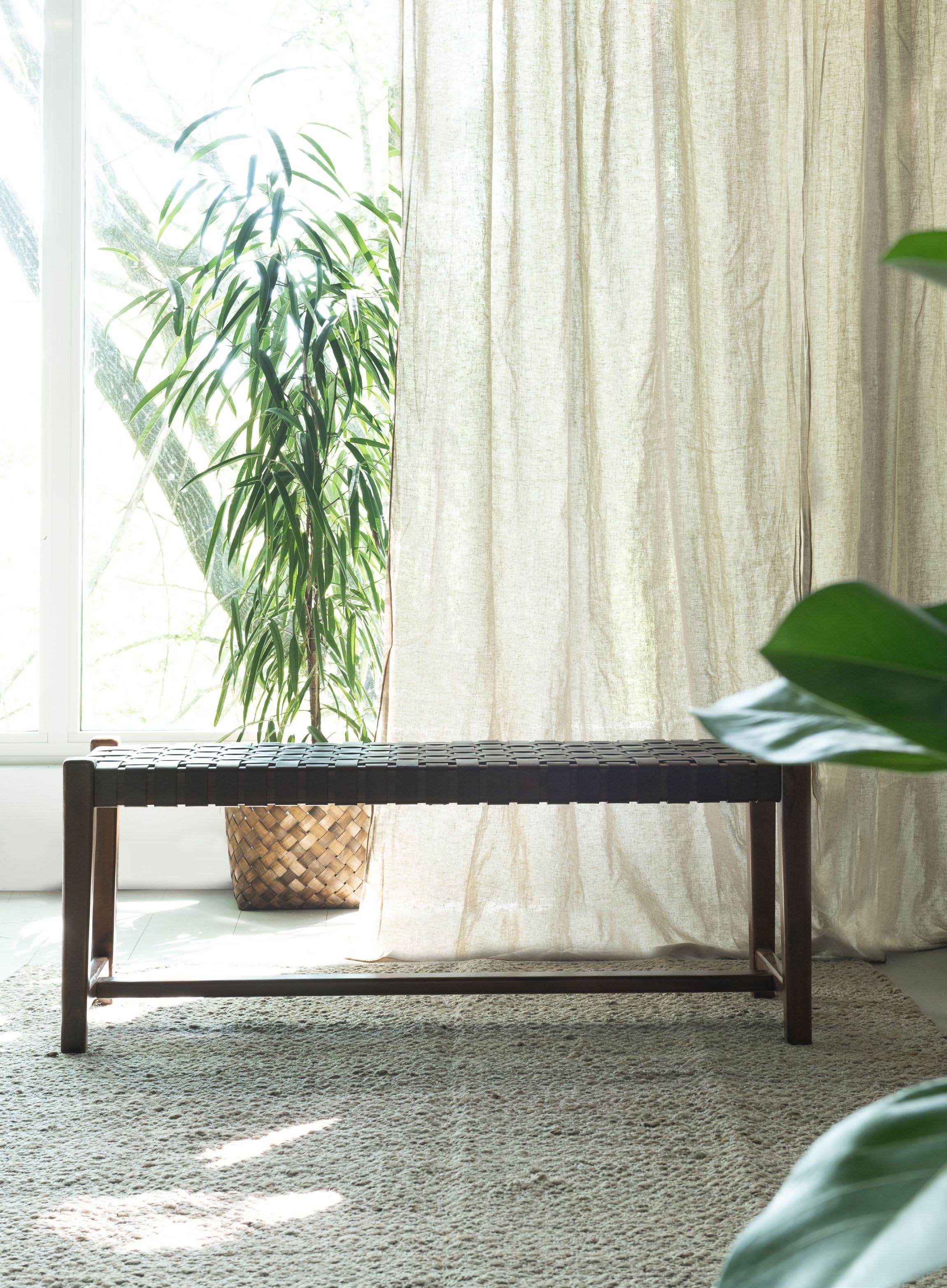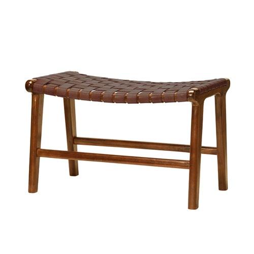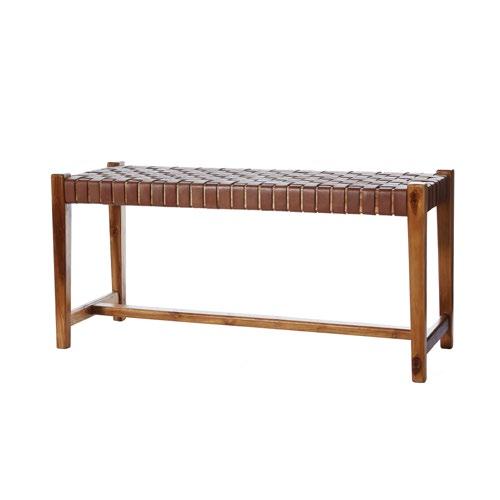 Cognac, Teak/leather 118x38x46cm 1 pc/pack 4 pcs=10% discount