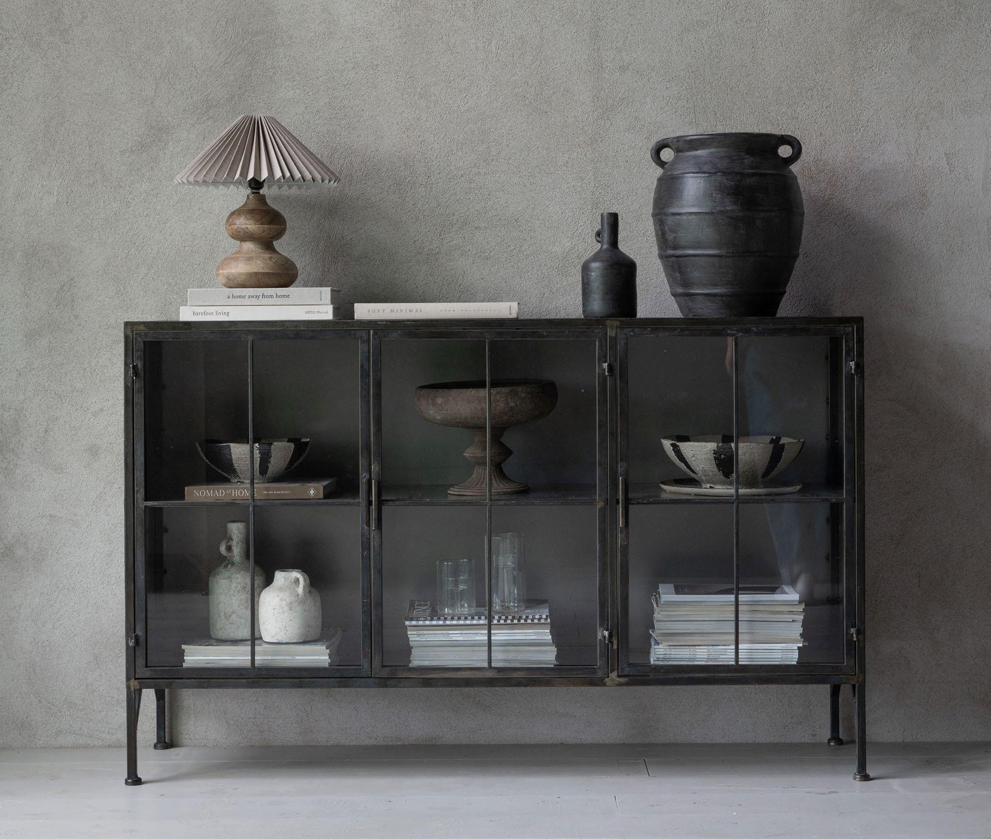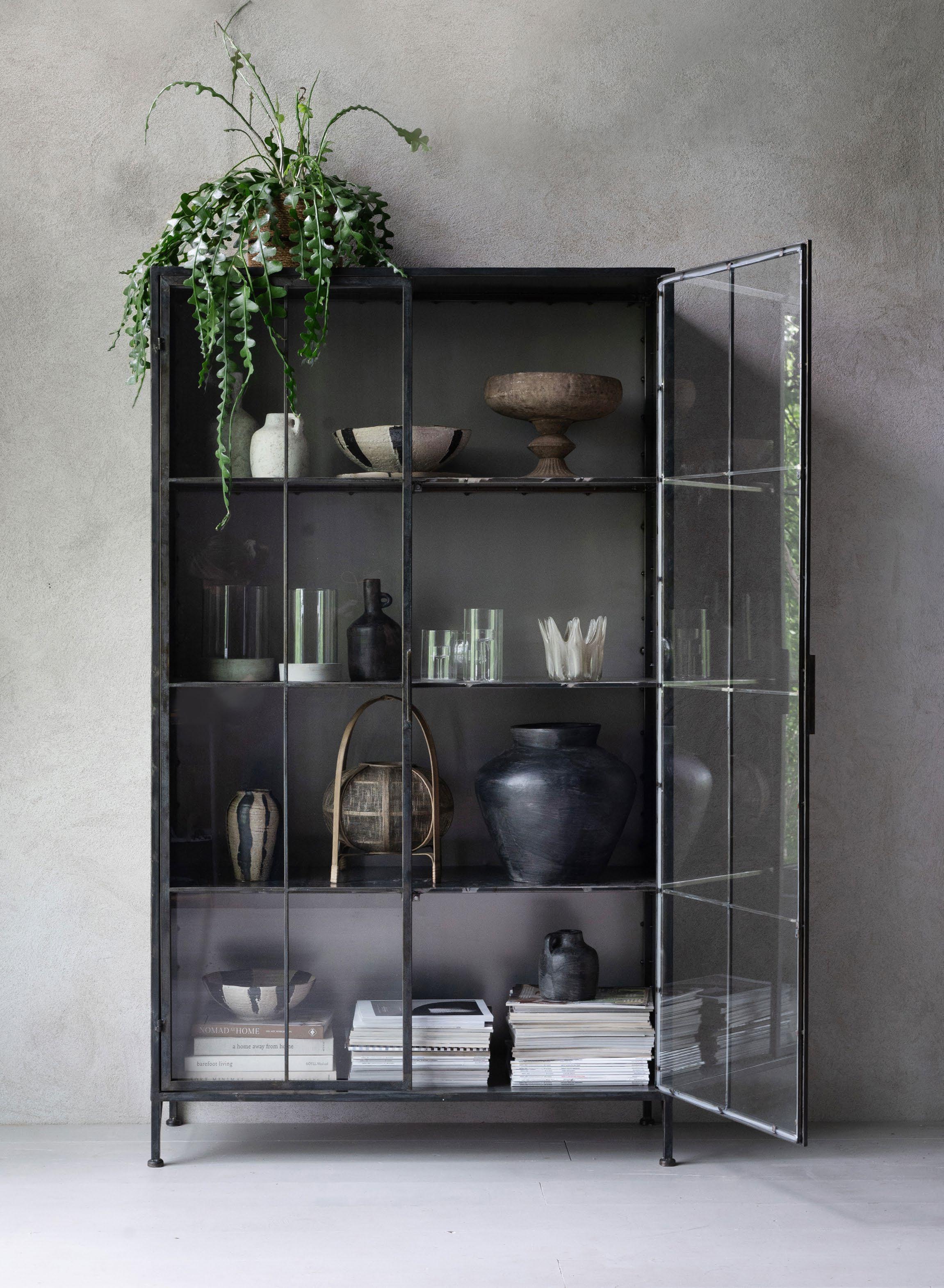 A STYLISH CABINET ENHANCES THE INTERIOR 61544 BREMEN CABINET Antique, Iron/Glass 151x42x94cm 1 pc/pack