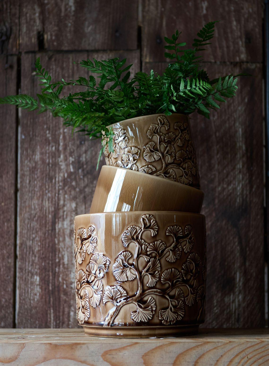 90516 HANNA PLANTER Brown Melange, Stoneware Ø23 / 35x16cm 2 pcs/pack
