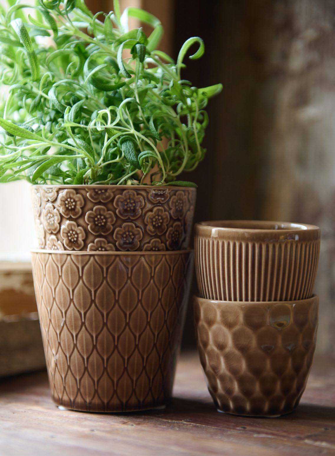 90515 HANNA PLANTER Brown Melange, Stoneware Ø18 / 28x12cm 4 pcs/pack