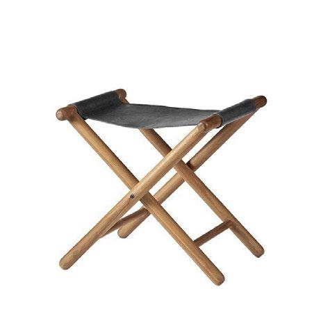 53321 FARO FOLDING STOOL Black, Teak/leather