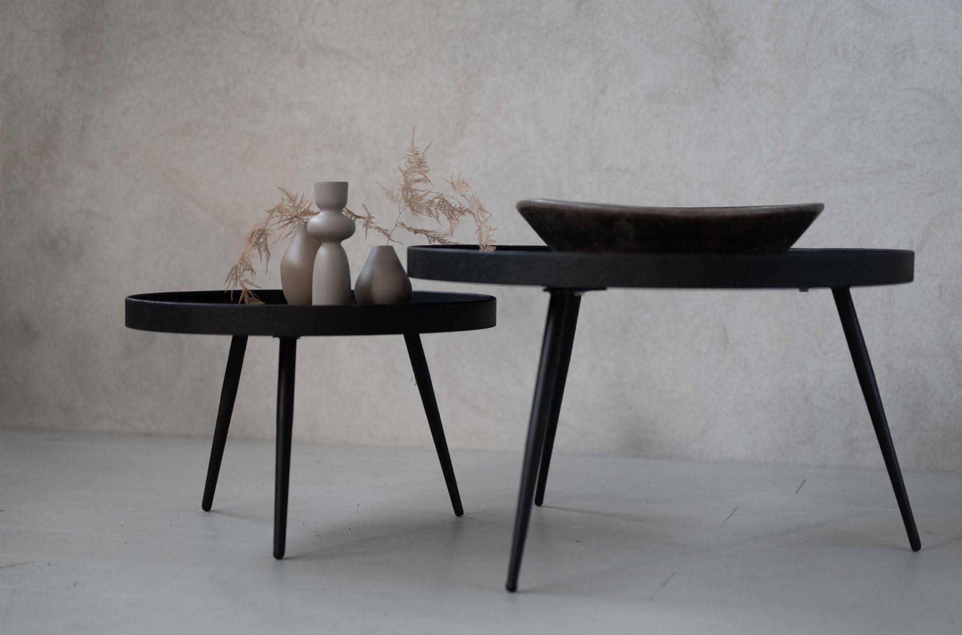 Black, Iron/Mango wood 57x52 49x46cm 1 set/pack