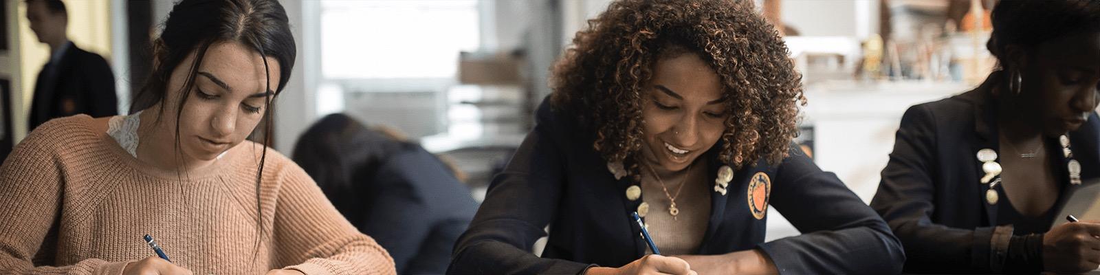 The goal of the ESOL program is to assist English language learners to increase their fluency, comprehension, and confidence in English, so they can use it comfortably and effectively in both academic and social situations. The program provides a balanced curriculum in the four essential domains of language mastery: reading, writing, listening, and speaking, as well as in grammar and vocabulary. Students work to acquire the academic skills needed for the increased level of difficulty and quantity of reading and writing that is expected of them in traditional English classes. Based on application materials and the results of the English placement tests taken by international students when they arrive on campus, students are placed either in traditional English classes or in one of two leveled ESOL programs. Those students who take ESOL also take U.S. History for ESOL Students. Students placed in traditional English classes may also be recommended for Writing Workshop, based on their demonstrated writing ability. Placement is by ESOL and English department recommendation.