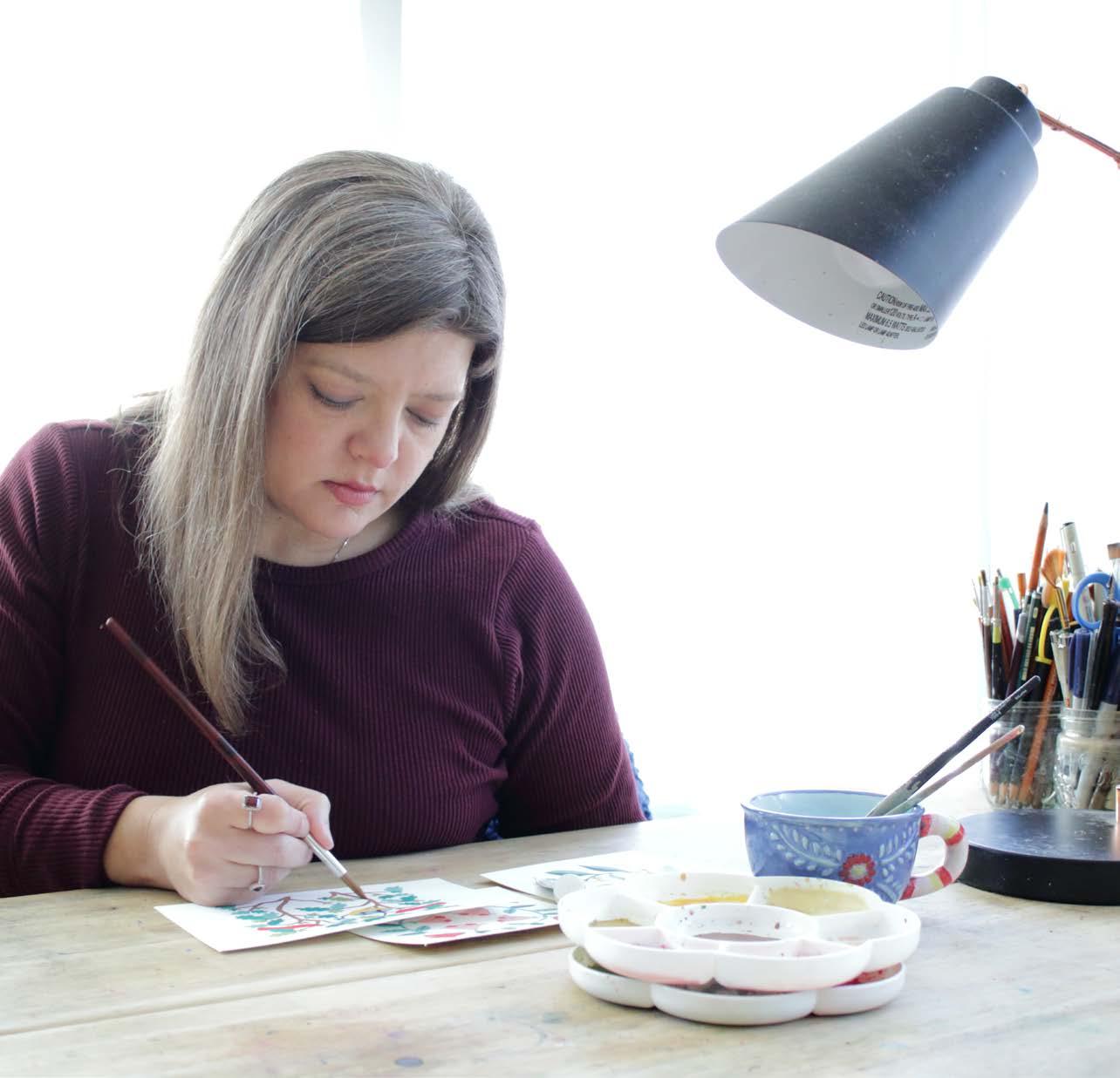 She has built a creative life that fits alongside family life, raising three children while continuing to paint, travel, and gather inspiration from the places and communities she encounters along the way. Each new place adds another layer to the stories she tells through her art.