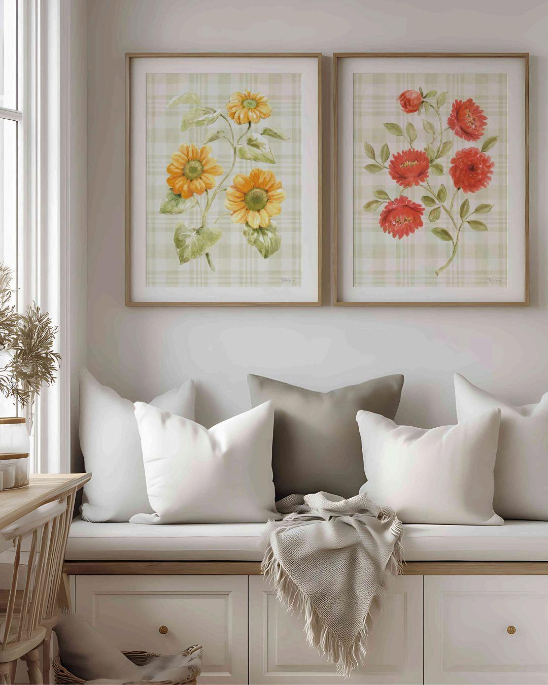 Warm color stories with pops of color Birds, insects, and animals become decorative statements