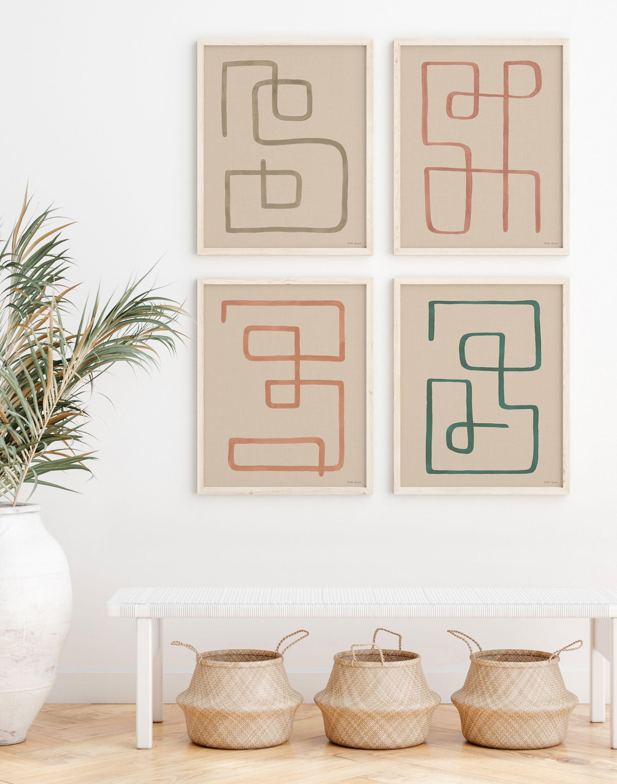The beauty of warm abstracts lies in their ability to make a statement, effortlessly commanding the attention of anyone who enters the space. These artworks evoke emotions, spark conversations, and add a layer of sophistication to walls, in soft earthy shades with pops of black for added drama.