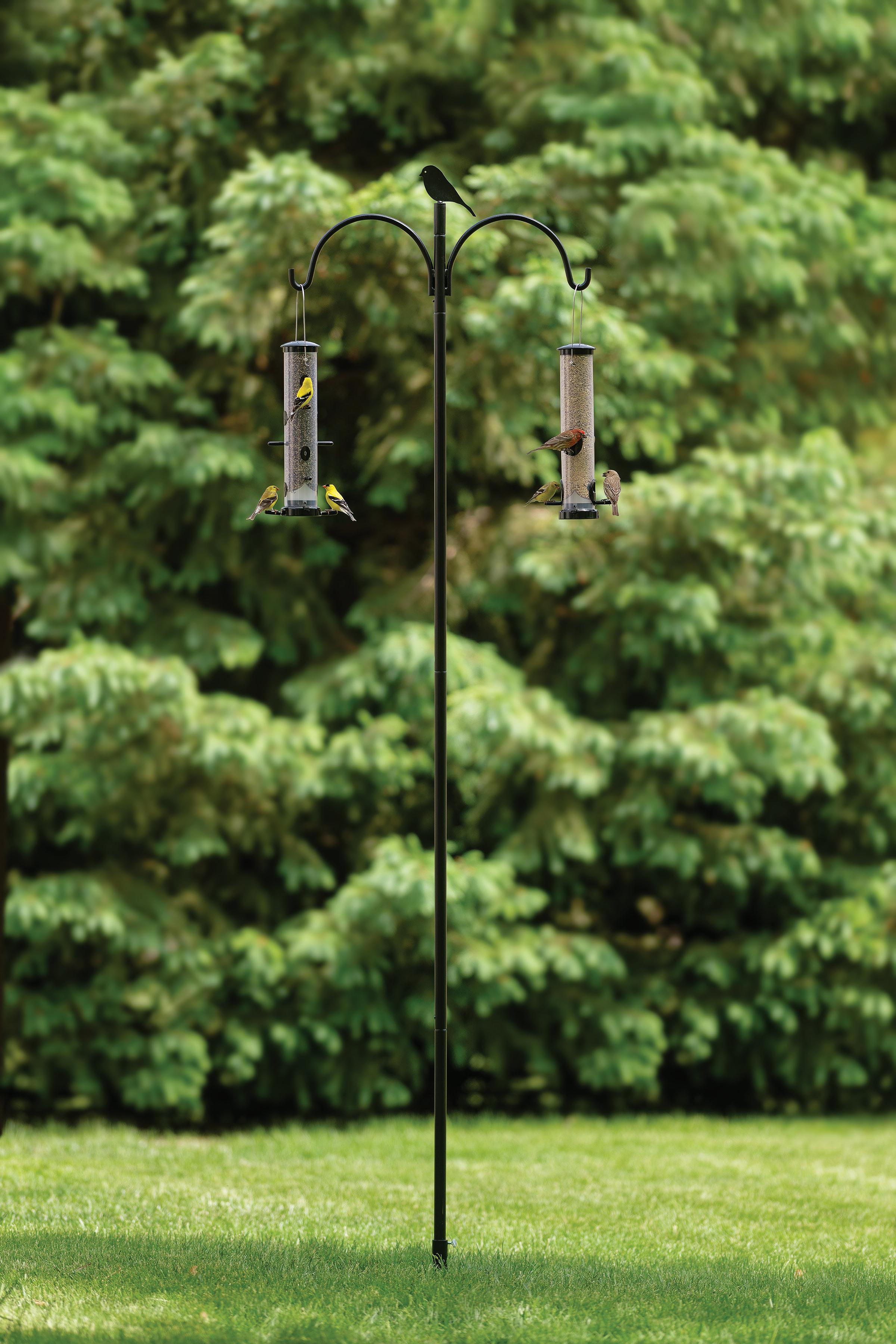 Our exclusive Advanced Pole System Hanging Kit is the perfect foundation for building a sturdy, customizable bird feeding station. Designed for easy installation, the powder-coated steel parts install and connect without tools. The built-in Ground Auger and Stabilizer keep the pole standing straight year-round. Plus, the modular design lets you expand or adapt your setup with additional accessories (sold separately)