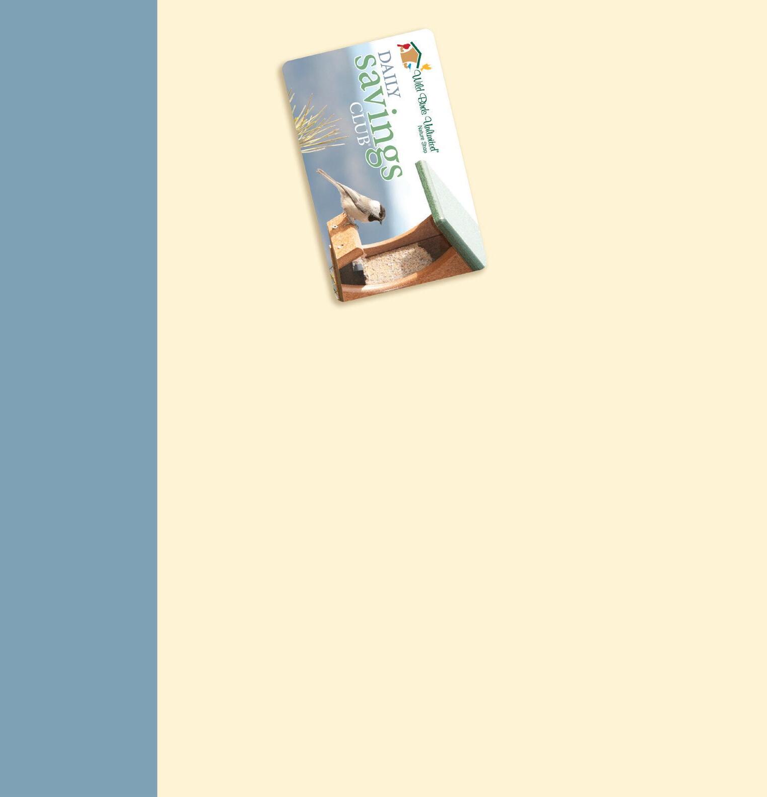 *Each Wild Birds Unlimited franchise store is independently owned and operated. Daily Savings Club Membership benefits are only valid at the Wild Birds Unlimited franchise store where the Membership was purchased.