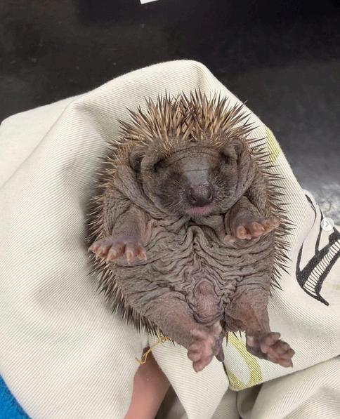Onthe2ndofNovember2025,thehospitalsaw threetinyhogletsbroughtintoourcare Theyhad arrivedasaresultoftheirnestbeingdisturbed. Sadly,oneofthethreehogletssustainedasevere backinjuryfromagardenfork,whichcaused irreparable,unsurvivabledamage