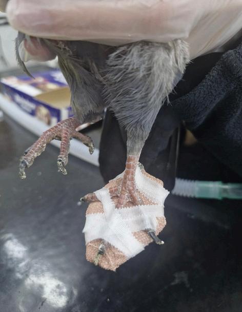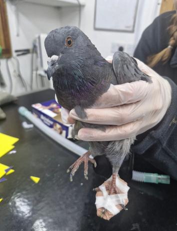 Thispigeonwasbroughttoourcareaftersufferingwoundstohisleftflankandknee.Therewere noobviousfracturestohisleg,however,iswassuspectedhewasn’tusingit,duetothepainhe sufferedelsewhere.