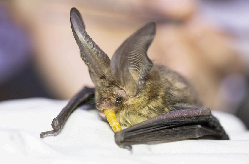 Thisbrownlong-earedbatwasfoundgrounded,near Leatherhead.