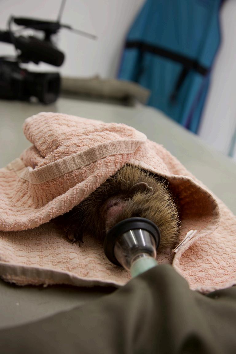 Ourvet,Judith,gottowork,stitchinguphiswound Hewasmovedtoanincubatortobe monitored.