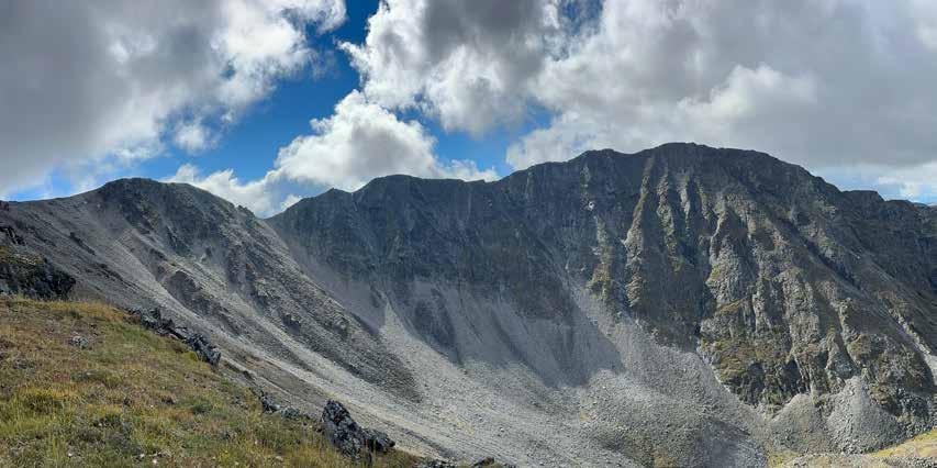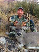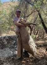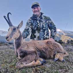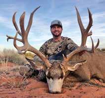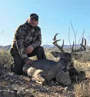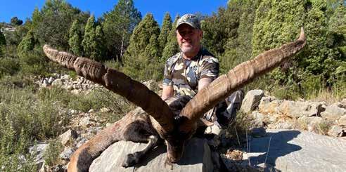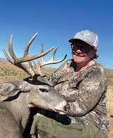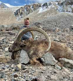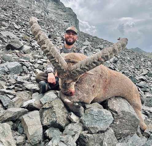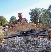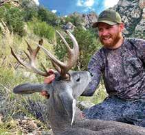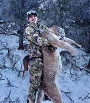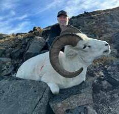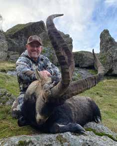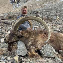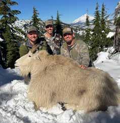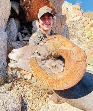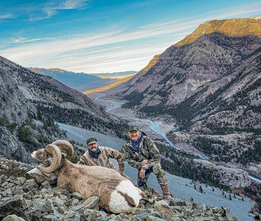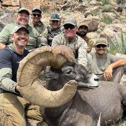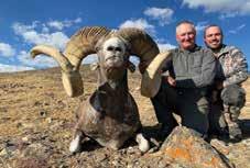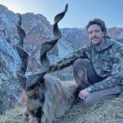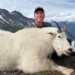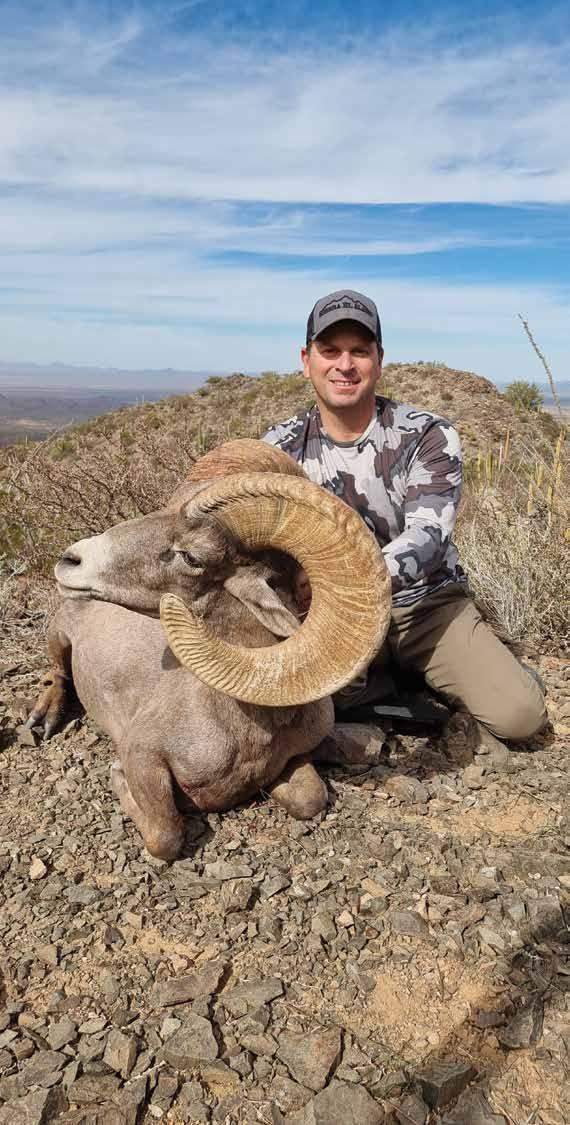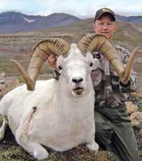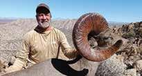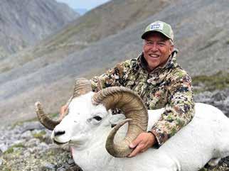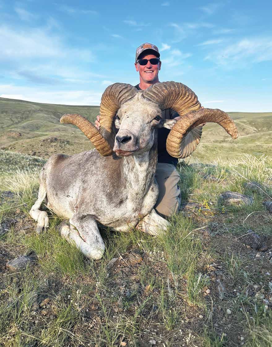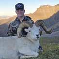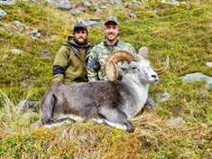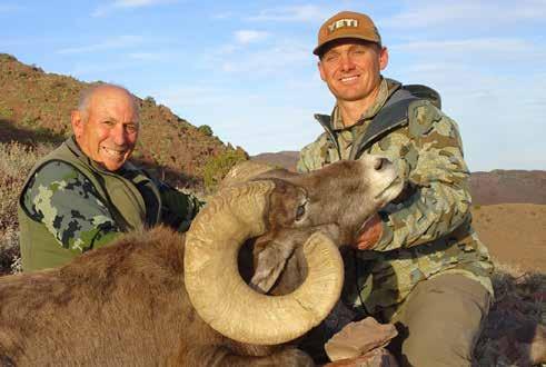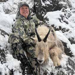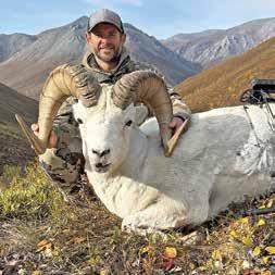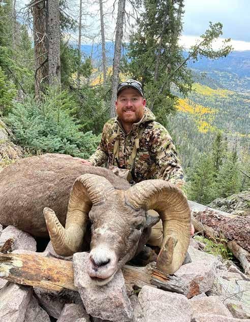 the mountain to ensure that there wasn’t a blood trail following the ram. Around halfway up the next boulder field, I decided to investigate the chute he walked through with my binoculars. Something had caught my eye as I did. Being uncertain that what I had spotted was just a miscolored rock or an illusion, I asked my guide to use his spotting scope for a better view. Without a sliver of hope, I sat there and waited for his response which was, “I’m sorry to tell ya Jess...” Instantly I responded, “It is a rock isn’t it?” With a grin from ear to ear he said, “You got yourself a ram.”