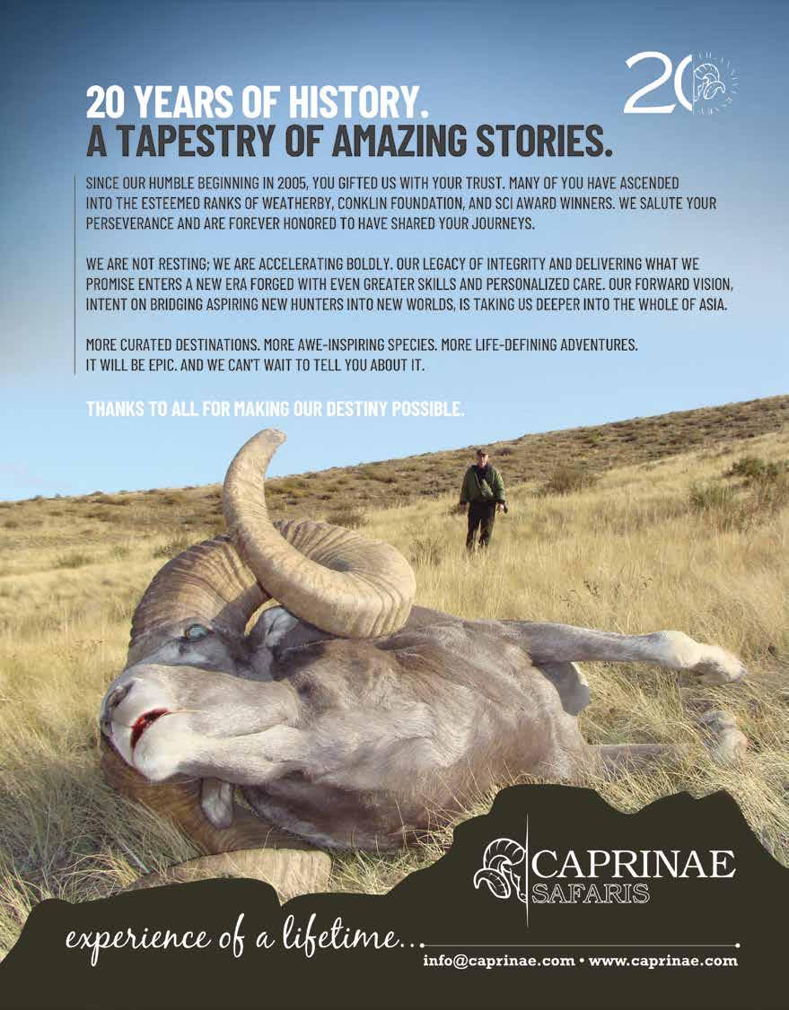 The Wild Sheep Foundation’s mission is to enhance wild sheep populations, promote scientific wildlife management, and educate the public and youth on sustainable use and the conservation benefits of hunting while promoting the interests of the hunter. The tradition began on a November weekend at Mt. Horeb, Wisconsin, in 1974. Thirteen wild sheep enthusiasts passed the time by sharing stories about their encounters with the majestic mountain creatures. After realizing how fortunate they were to have all shared such incredible experiences, they decided it was time to give something back. They forged FNAWS so men and women everywhere could get more involved in the positive management of wild sheep. It was incorporated as a non-profit corporation in Iowa on September 14, 1977, and began accepting paid memberships in 1978 as more people joined the cause. The commitment and noble spirit of FNAWS quickly helped the foundation become the fastestgrowing wildlife conservation organization of its kind.