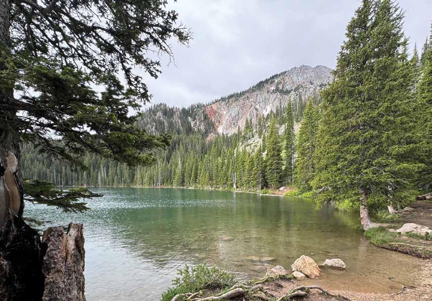 The first day of the season, September 19, 2025, started at 4:45 a.m. My brother, Todd, two friends, Terry and Jared, and myself knew those eight rams were somewhere on the mountain and we were after them. On our way up into Pikes Peak everyone was so calm, it was almost alarming. Once we parked the trucks, we glassed up into the drainage and there sat the rams up against a rock wall, as if they had been set there just for us to see. They had been feeding and were on their way to the water. We strapped on our packs and began our ascent to where we knew where to find them. After a half hour of walking along the old mining trail, we spotted moose tracks and rounded the corner to see the beasts responsible for them. Being chased by a bull, a cow moose jumped into the lake right in front of us and we watched her swim all the way across. Watching the bull jump in and out, and the cow swim in circles, it was as if they were just calves playing around. For a moment it even felt as if we were just as young as we sat in awe and forgot entirely about the task ahead of us.