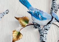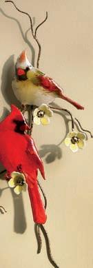 A stunning flash of woodland color, a songbird is always a treat to see especially on a white birch branch. Stainless steel and copper accents offer a pleasing composition in these hand-made wall sculptures crafted by skilled artisans in the USA using a 1600 degree heat to fuse the vitreous glass enamel onto copper for permanent, stunning color. ❖ $190 each Cardinal
