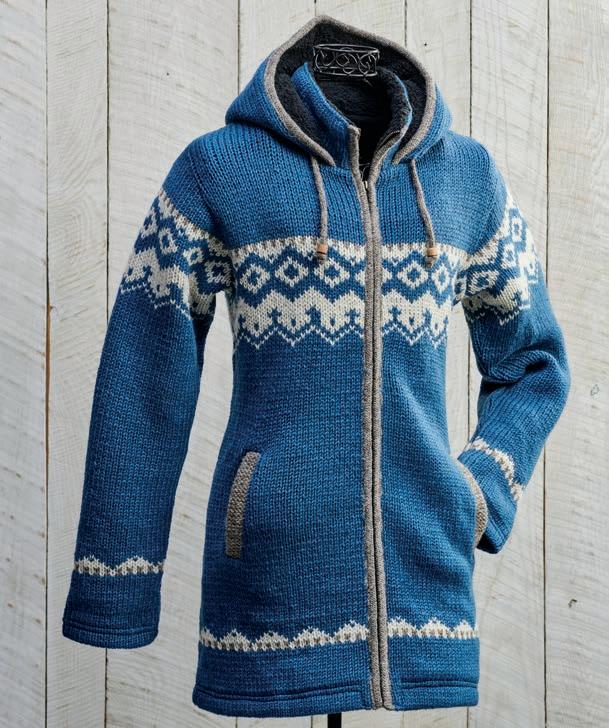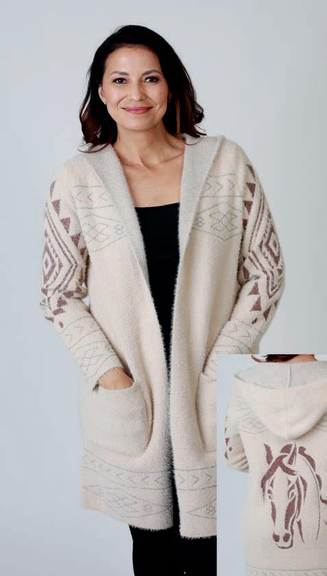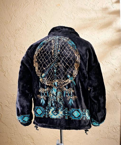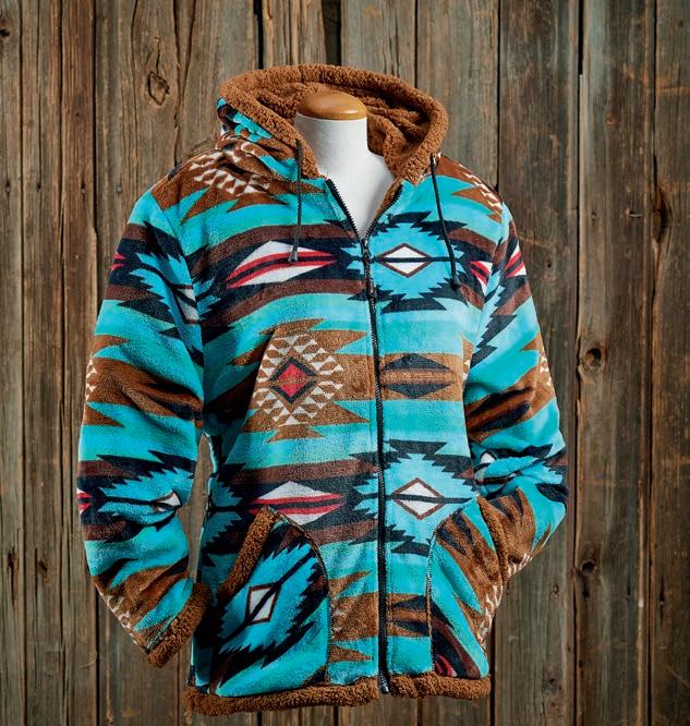 While the Southwest boasts hot and dry weather, it also includes some snowy escapes. Whether you’re hitting the slopes or escaping to a wintry getaway, a Southwesternstyle long jacket, in snowy whites, neutrals, and grays, is a perfect comfortable companion. Wool jacket with fleece lining can be dry cleaned and laid flat to dry. Specify size. Imported. $240 each S(26-28) No. 148550 XL(38-40) No. 148553 M(30-32) No. 148551 XXL(42-44) No. 148554 L(34-36) No. 148552