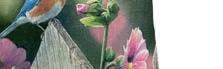 Easily change the look of a room with a Wild Wings accent pillow. Remarkable art on one side; classic, complementing design on the reverse. Poly/cotton blend cover with polyester insert. Hidden zipper enclosure. Hand-washing recommended. 18"H x 18"W. ©Susan Bourdet. Produced by Wild Wings® a division of Art Brand Studios, LLC. Specify design. $34.95 each Garden Gems–Ruby-throated Hummingbird No. 146837 Bluebirds No. 146834