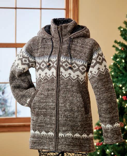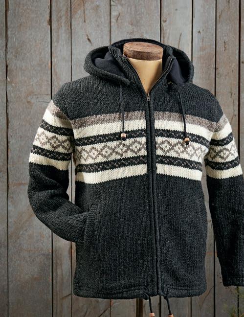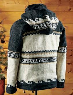 With drawstring waist, high collar, and hood to keep out chilly air, the sweater jacket is easily worn well into the winter months. Removable hood and inside zippered pocket. Crafted in Nepal of 100% New Zealand wool with a cozy black fleece lining. Dry clean or wash cold; lay flat to dry. Imported. Unisex sizing with slightly tailored fit. Specify size. $210 each S(26-28) No. 137913 L(34-36) No. 137893 XXL(42-44) No. 137934 M(30-32) No. 137903 XL(38-40) No. 137923