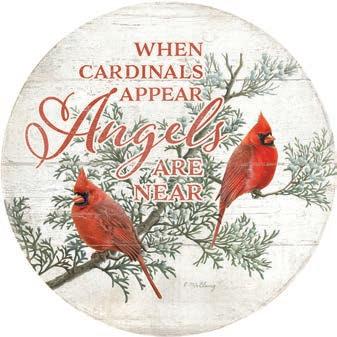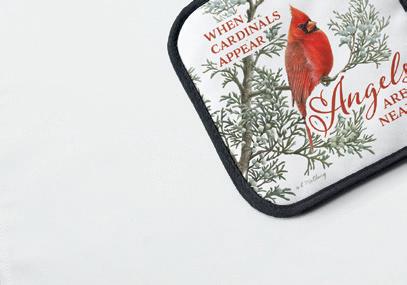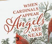 “When Cardinals Appear Angels Are Near”. Easily change the look of a room with a Wild Wings® accent pillow. Remarkable art on one side; classic, complementing design on the reverse. Poly/cotton blend cover with polyester insert. Hidden zipper enclosure. Hand-washing recommended. 18"H x 18"W. ©Catherine McClung. Produced by Wild Wings® a division of Art Brand Studios, LLC. No. 134353 $34.95 each SAVE! Buy 2 or more for $32 each